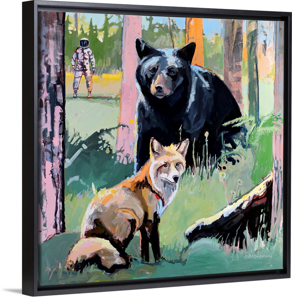 Art Eclectic Contemporary Art Green Wall Art Landscapes Trees Forest Painting Space Astronaut Adam Swanson Wildlife Bear Fox