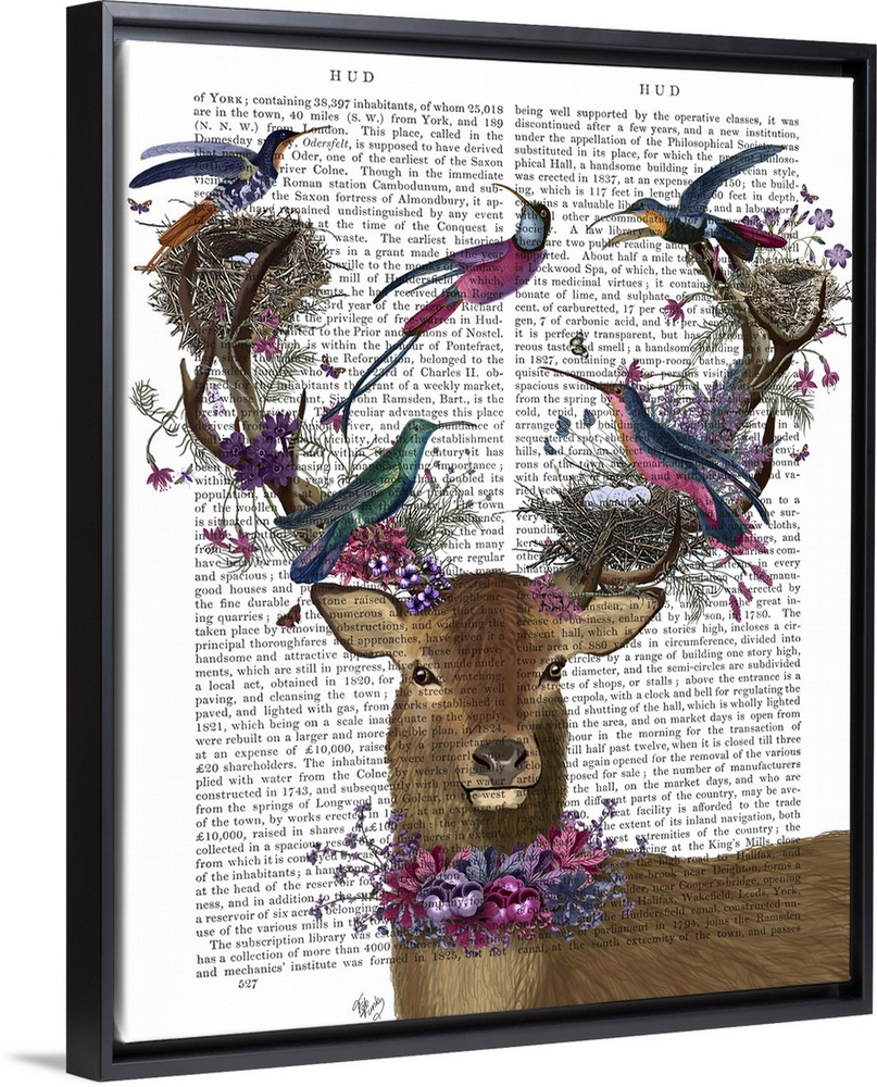 Art Decorative Art Fab Funky Graphic Art Painting Surrealism Wildlife Bird Tropical Birds Deer