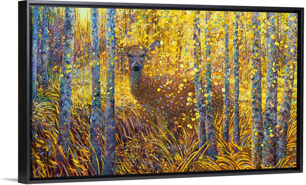 Art Contemporary Art Wildlife Fall Trees Forest Painting Iris Scott Wildlife Deer Yellow Wall Art