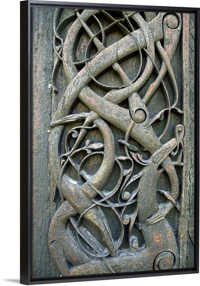 <p>NORWAY. SOGN OG FJORDANE. Urnes Stavkirke, aka Urnes Stave Church (woodden church from 12th c.). Detail of Viking decorations. -</p>