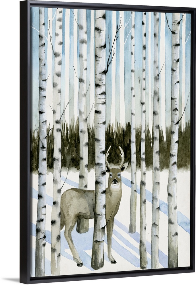 <p>Illustration of a deer hiding in aspen trees in the winter.</p>