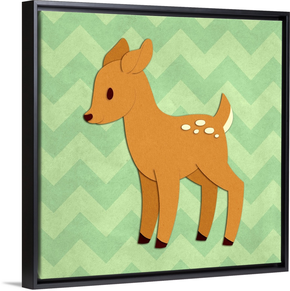 <p>A cute fawn with the appearance of cutout paper on a light green chevron-patterned background.</p>