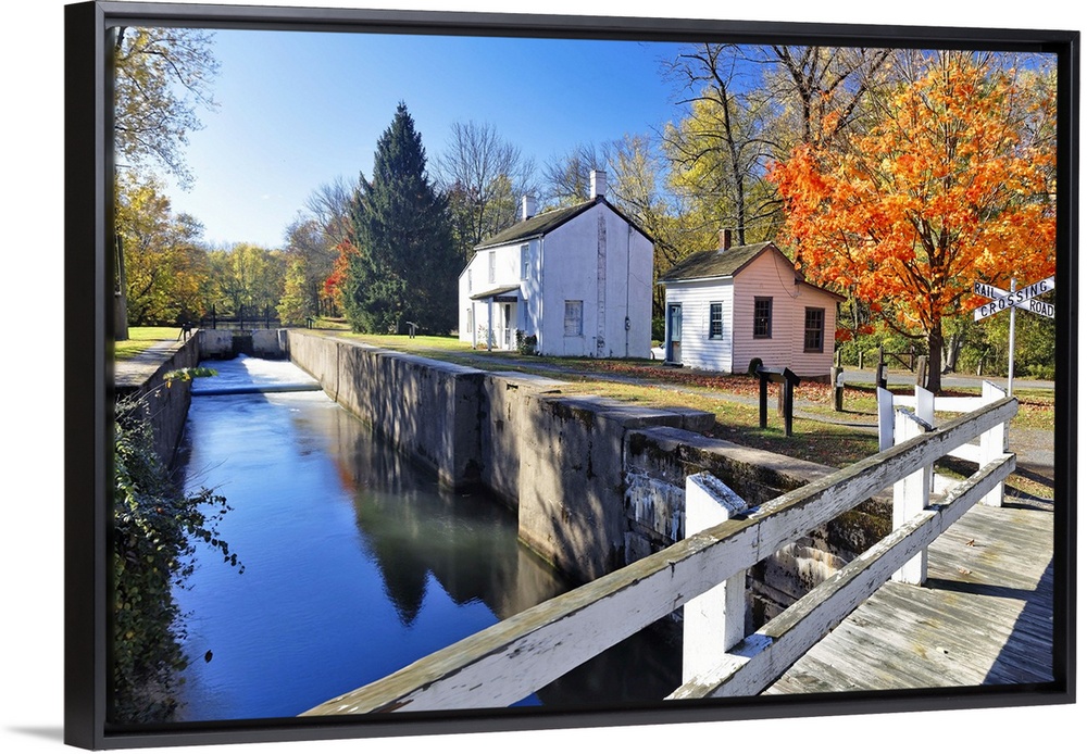 <p>White wooden fence along a bridge over a canal in New Jersey.</p>
