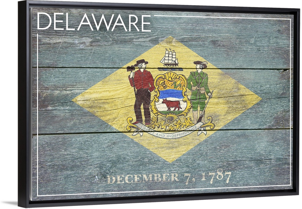 <p>The flag of Delaware with a weathered wooden board effect.</p>