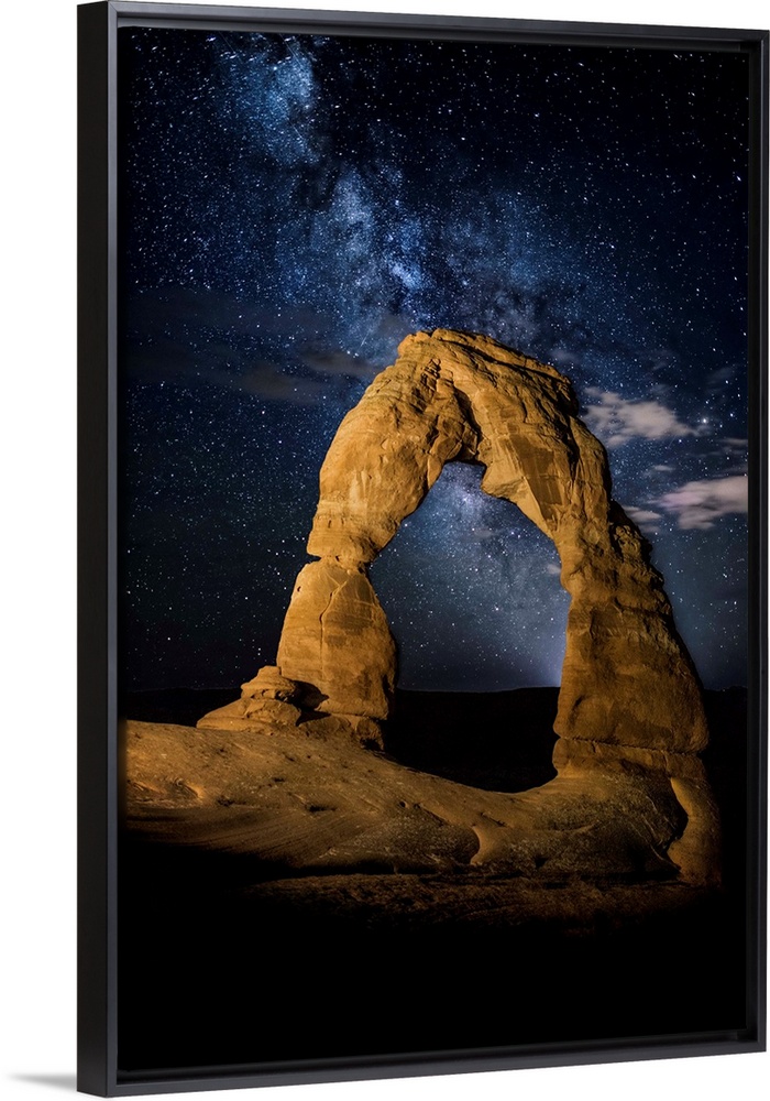 <p>Delicate Arch in Arches National Park, Utah, under a starry night sky.</p>