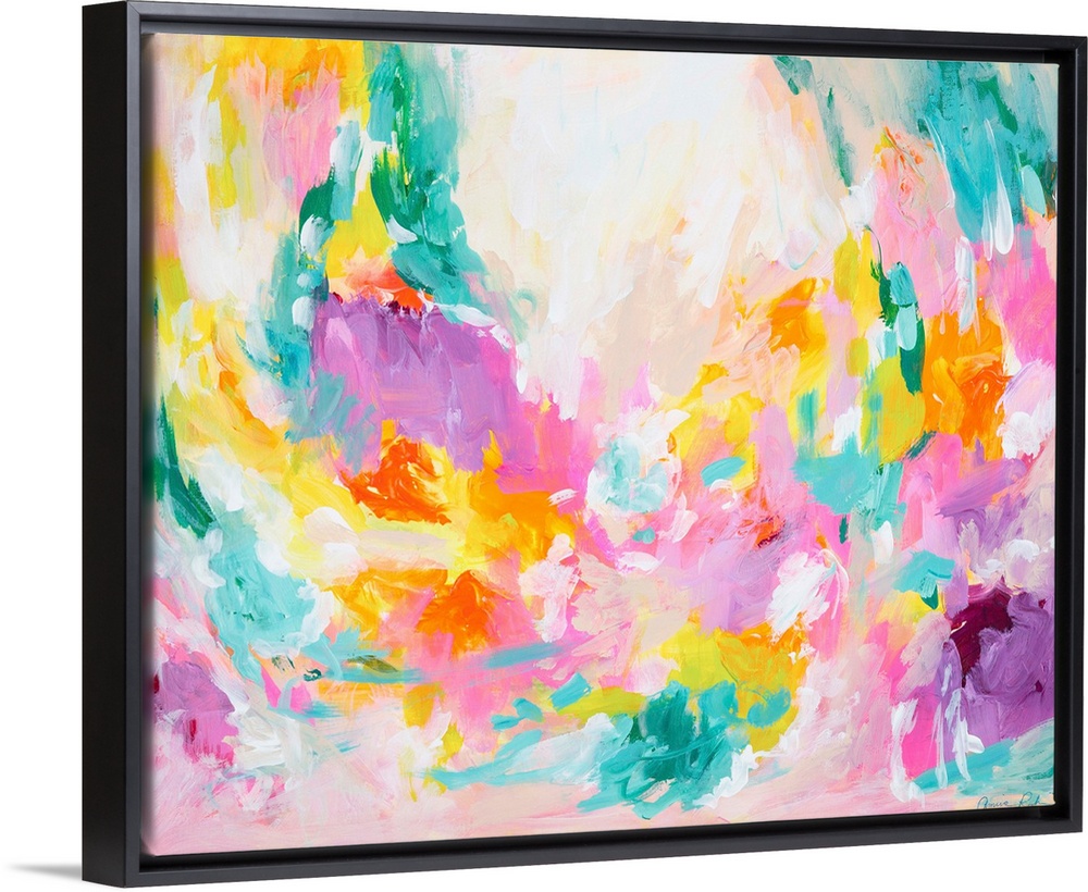 <p>Contemporary abstract artwork in vibrant shades of pink, yellow, purple, and teal.</p>