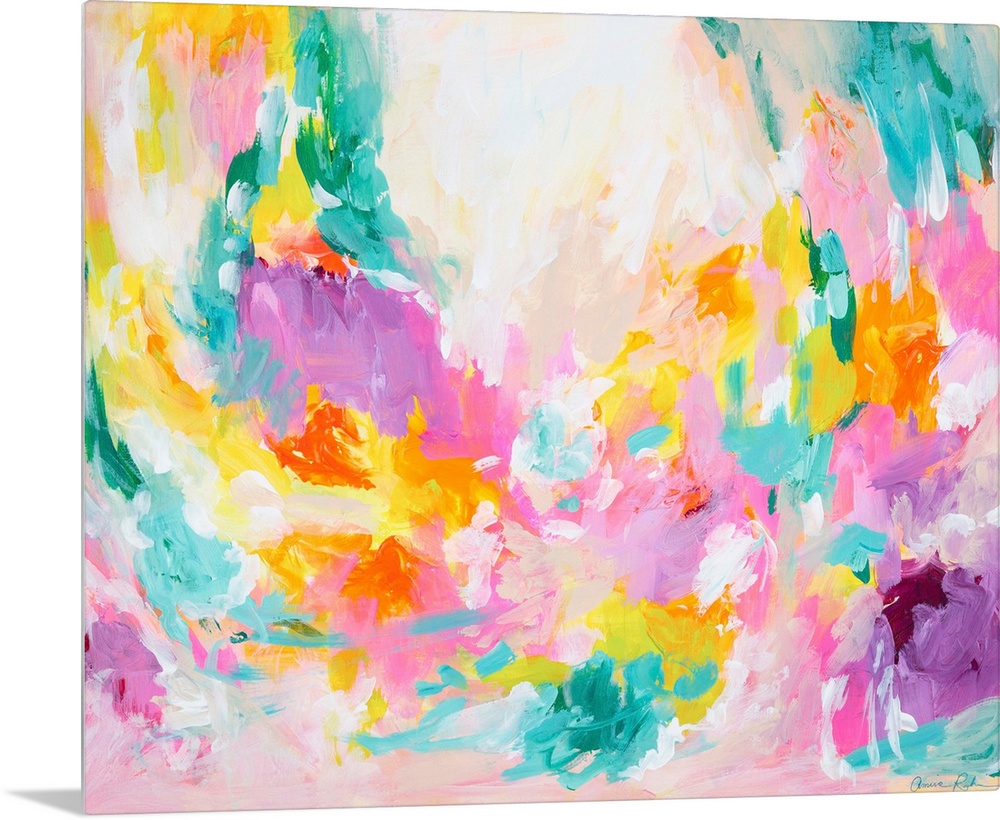 <p>Contemporary abstract artwork in vibrant shades of pink, yellow, purple, and teal.</p>