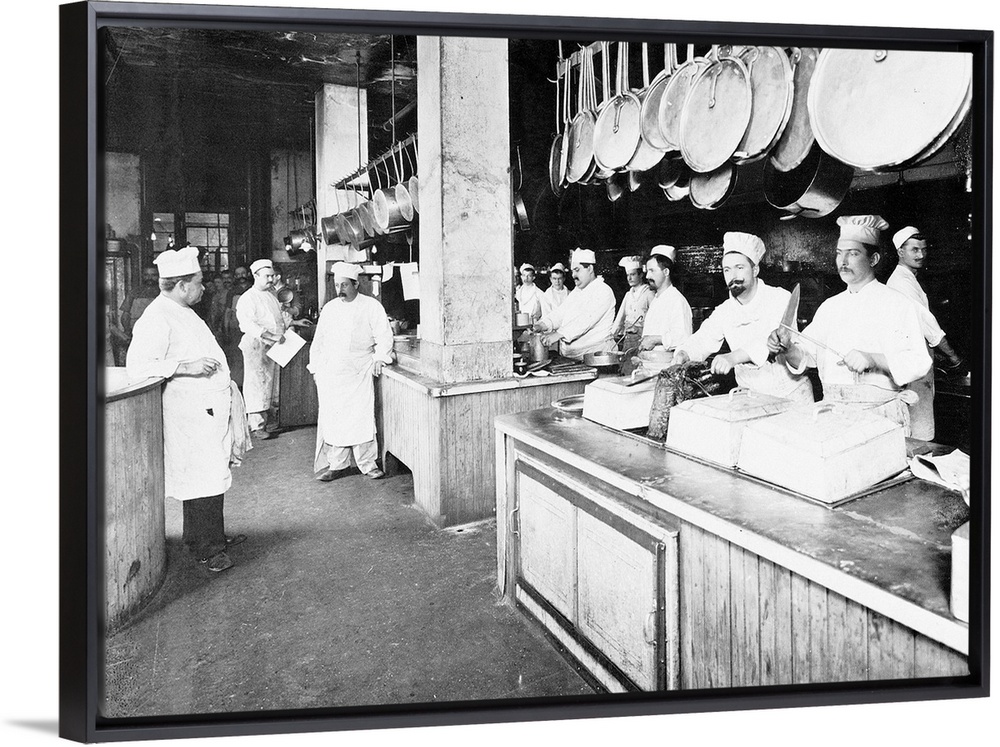 <p>The kitchen of Delmonico's Restaurant, New York City. Photographed by Joseph Byron, 1902.</p>