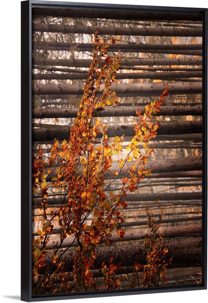 <p>Small colorful tree with trunks in the background</p>