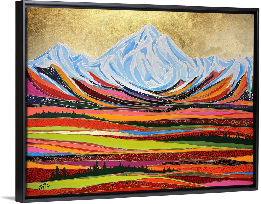 <p>Dawn Gerety was born in Sydney, Australia and raised across the globe in Girdwood, Alaska. As a lifelong Alaskan, she is moved by the natural splendor that has surrounded her her entire life – mountains, wildlife, rivers, wildflowers and outdoor activities. Dawn paints these images and creates her own language with a swipe of color or a rigid line of dots. She injects a fiercely whimsical vitality to Alaskan icons the only way she knows how.</p>