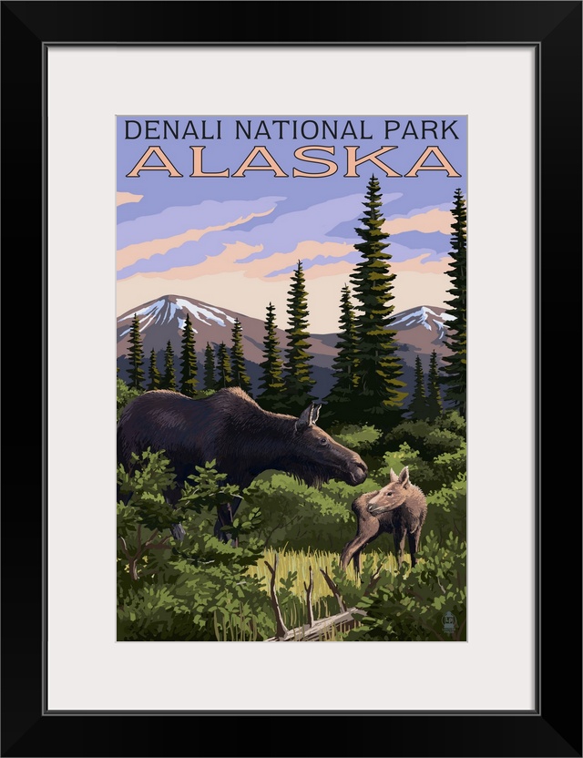 Art Lantern Press Alaska Denali National Park Wildlife Moose and Elk