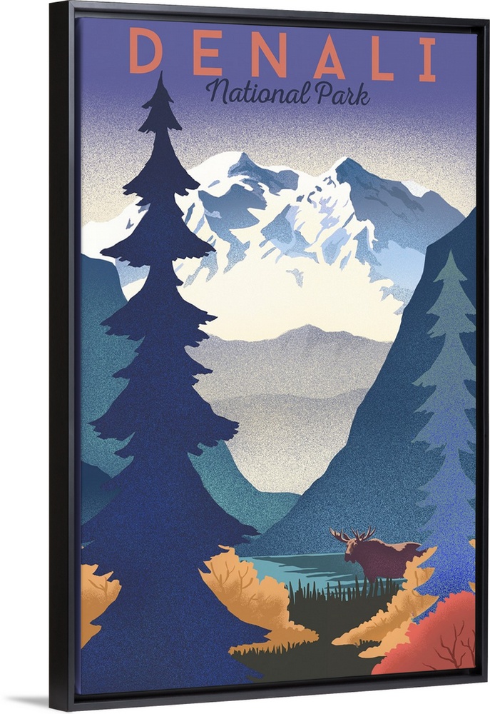 Art Mountains Trees Lantern Press United States Alaska Denali National Park