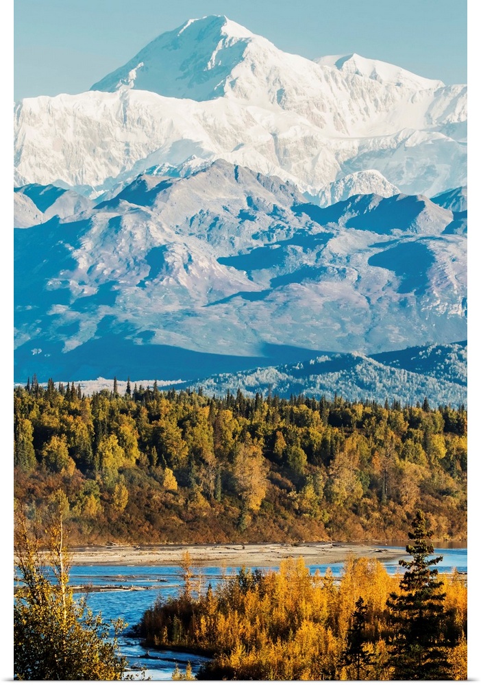 <p>Denali, viewed from the Parks Highway, interior Alaska, near South Viewpoint rest stop, Alaska, United States of America.</p>