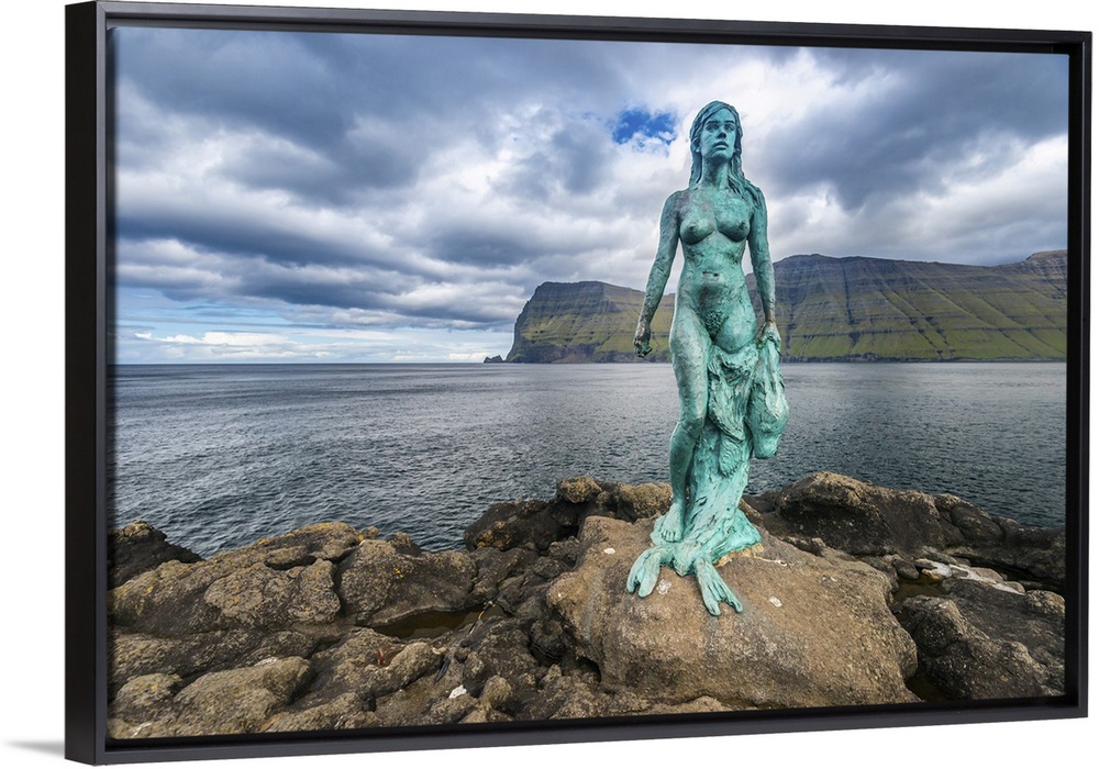 Denmark, Faeroe Islands, Kalsoy, Mikladalur, The Statue Kopakonan