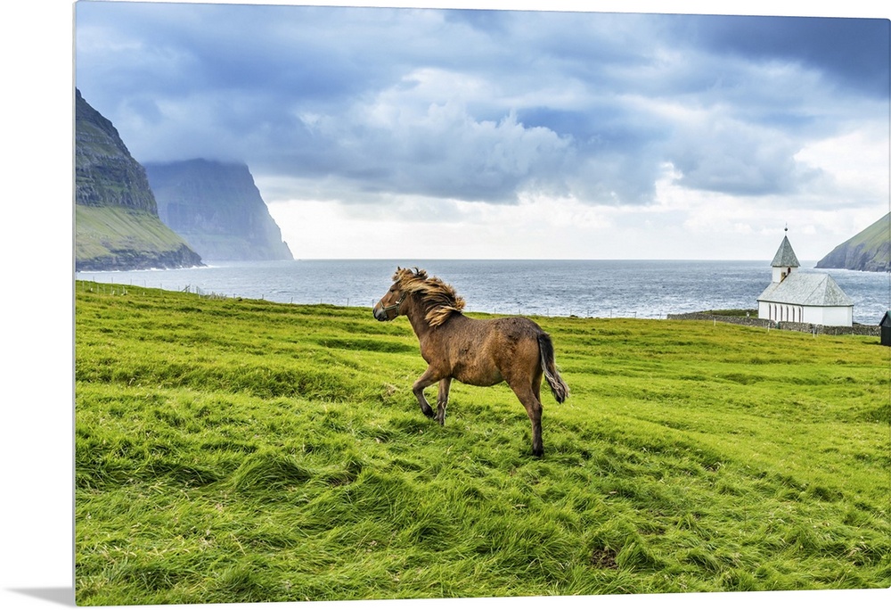 <p>Denmark, Faeroe Islands, Vidoy, Vidareidi, View of Vioareioi church</p>
