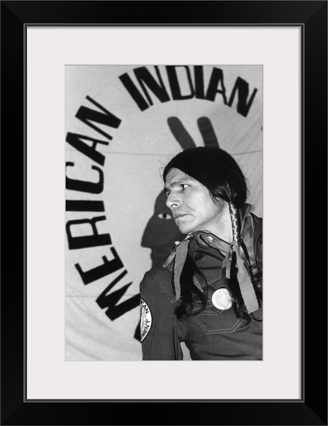 <p>Dennis Banks, announcing his resignation as national executive of AIM, American Indian Movement. He cited pressures from his trial resulting from the AIM 71 day Wounded Knee occupation, from Feb. 27-May 8, 1973. Banks, was one of several co-founders the American Indian Movement in June 1968.</p>