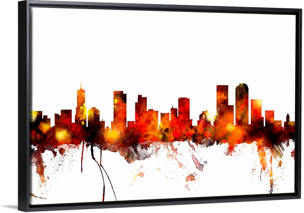 <p>Watercolor artwork of the Denver skyline against a white background.</p>