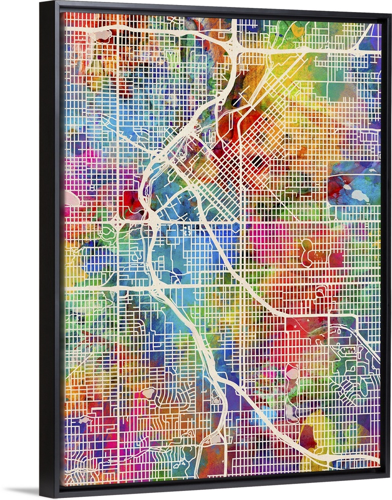 <p>Contemporary watercolor city street map of Denver.</p>