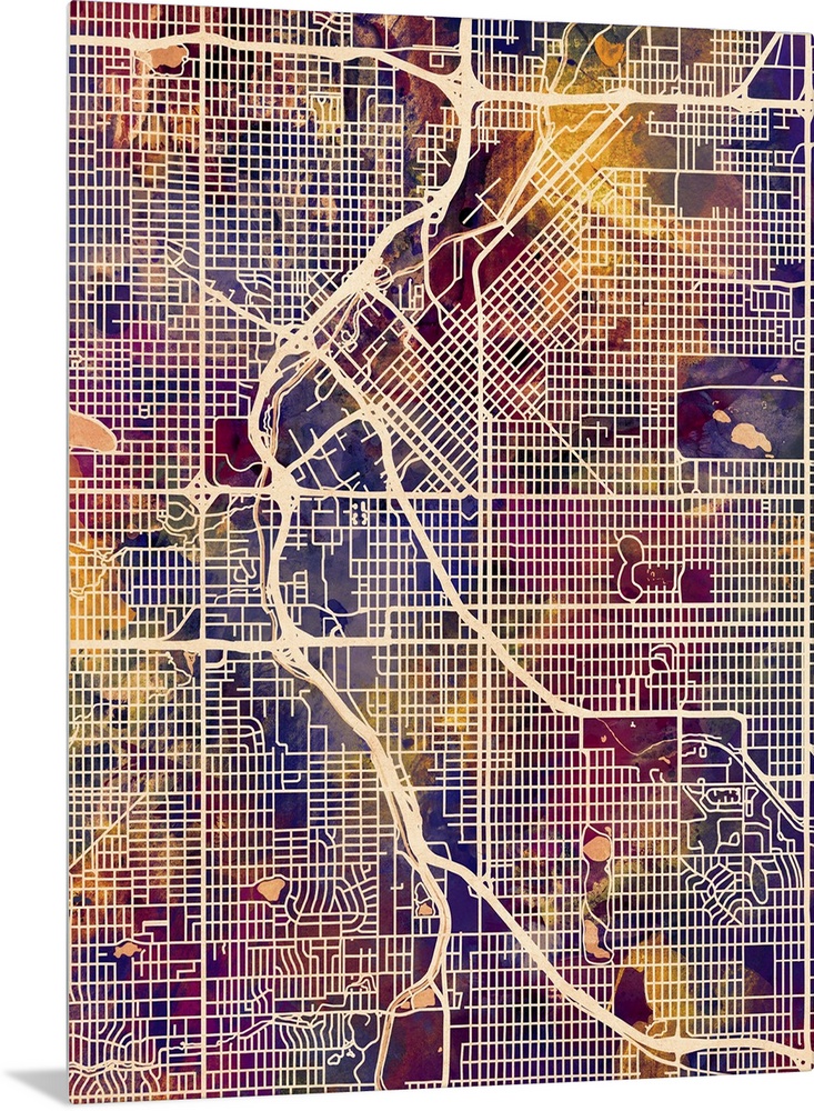 <p>Contemporary watercolor city street map of Denver.</p>