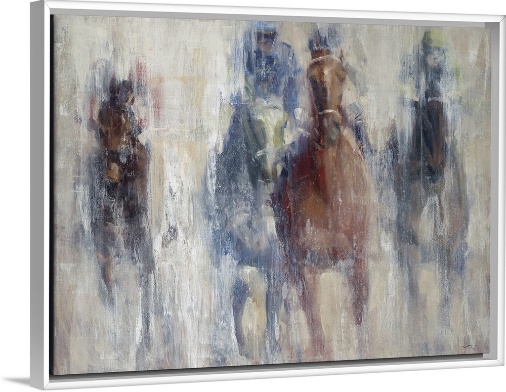<p>A contemporary painting of a horse derby, with the impression of the horses advancing toward you.</p>