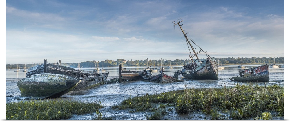 <p>Derelict boats in a graveyard on the mud at Pin Mill.</p>