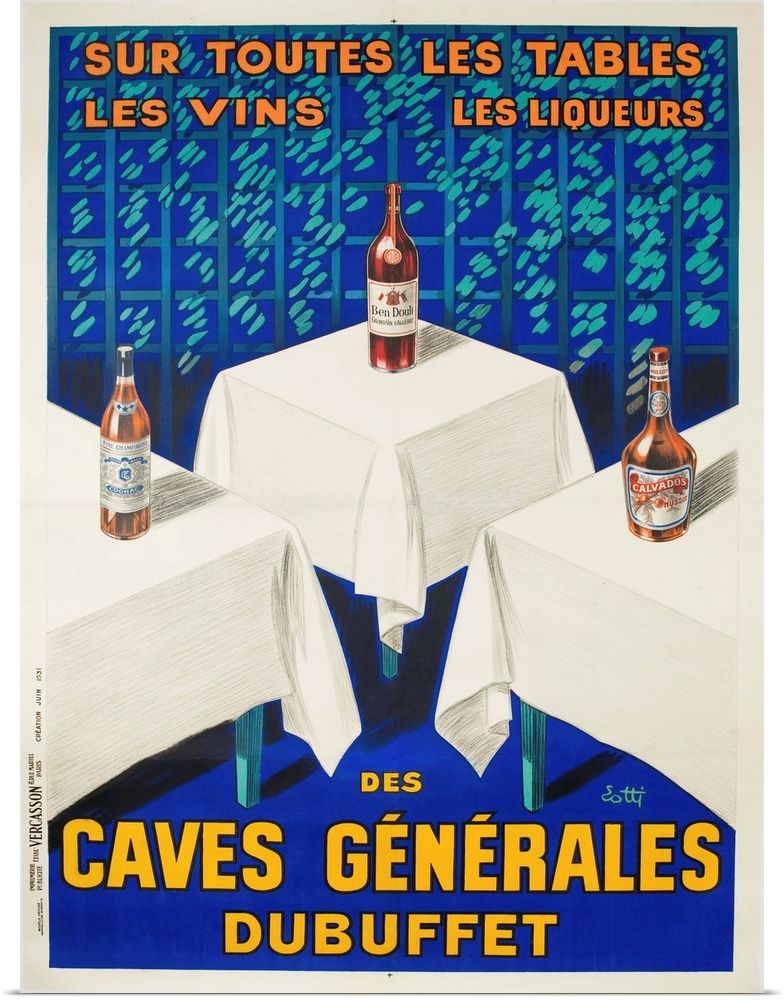 <p>French Advertising poster for wines and spirits, ca 1920s. Illustrated by Lotti</p>