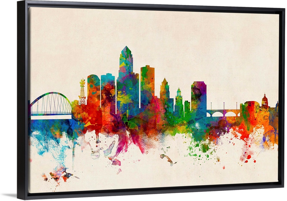 <p>Watercolor art print of the skyline of Des Moines, Iowa, United States.</p>