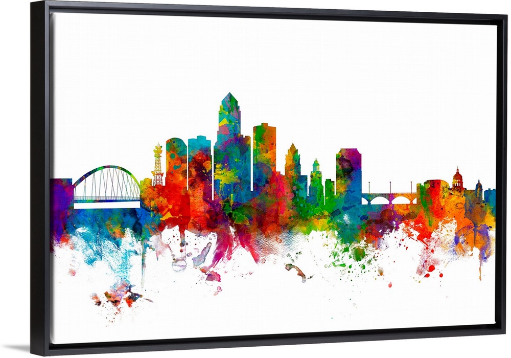 <p>Watercolor art print of the skyline of Des Moines, Iowa, United States.</p>