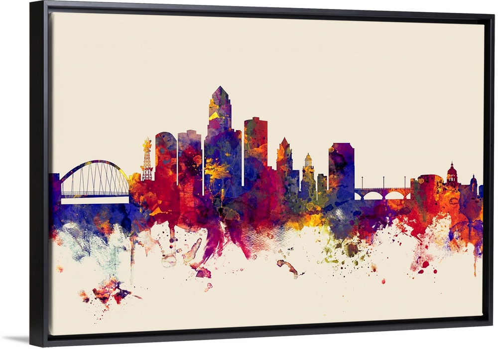 <p>Watercolor art print of the skyline of Des Moines, Iowa, United States.</p>