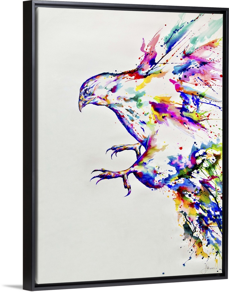 <p>Watercolor and ink painting of a colorful bird in flight.</p>