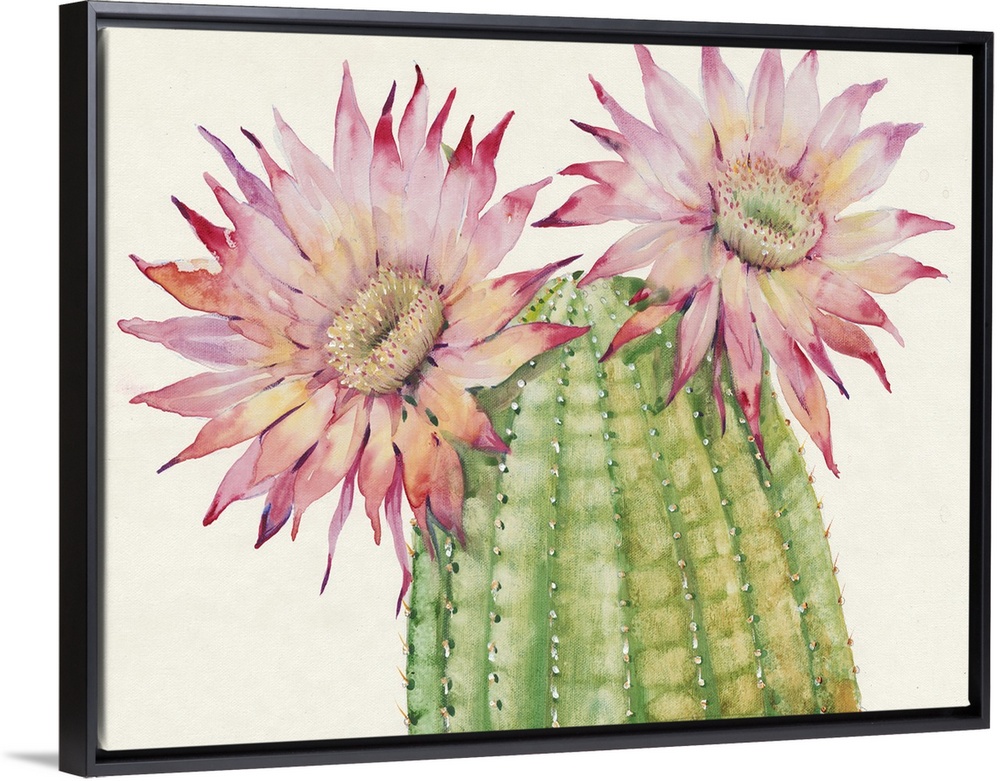 <p>A contemporary watercolor painting of a cactus with colorful flowers.</p>