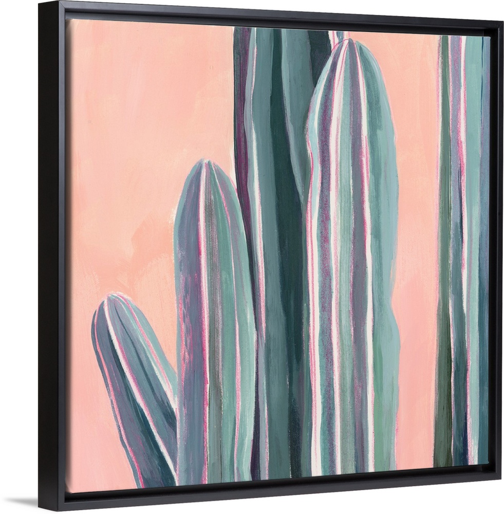 Art Bohemian College Dorm Décor Boho Chic Color Palettes Minty Desert Stillness Decorative Art Florals Cactus Painting Pink Wall Art Grace Popp