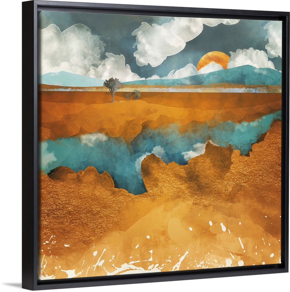Art Teal and Copper Contemporary Art SpaceFrog Designs Graphic Art Landscapes River, Creek and Stream Gold