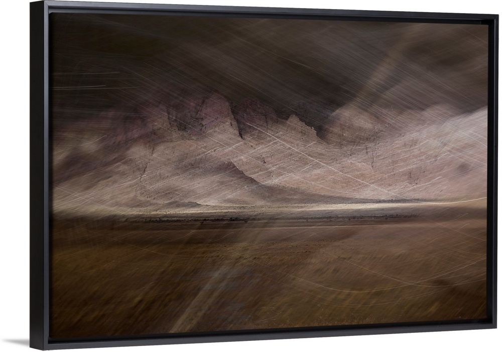 <p>Abstract image of a desert storm with thin lines on top creating movement and a rocky textured background.</p>