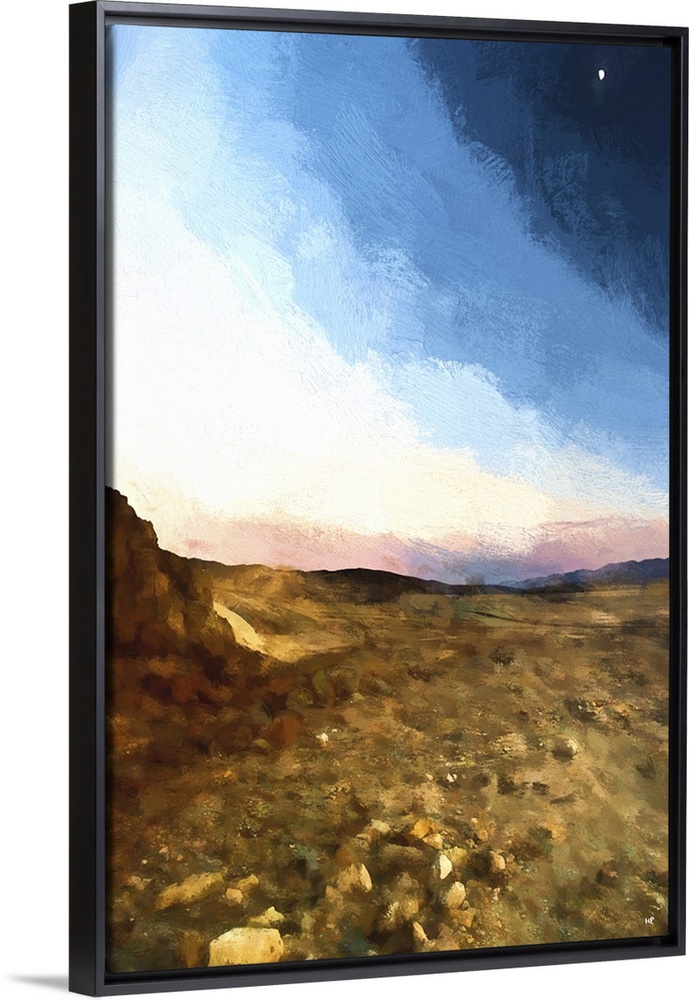 <p>A photograph of a desert landscape with a painterly effect.</p>
