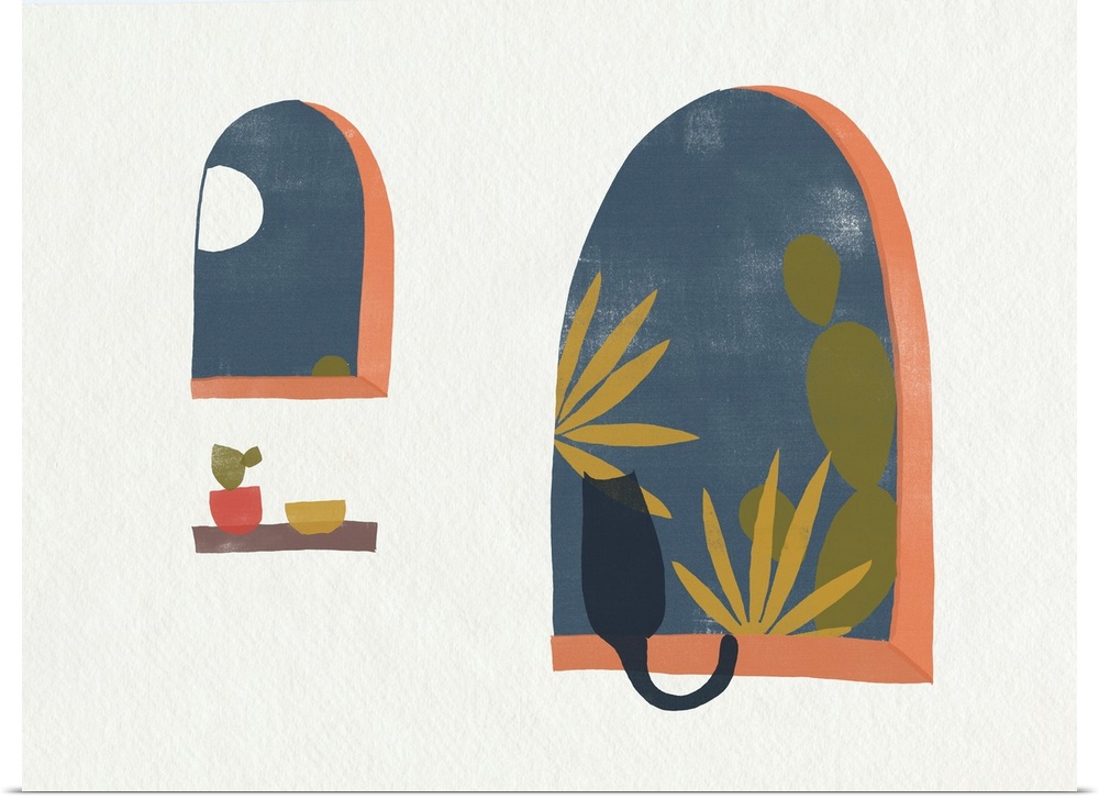 Architecture Window Art Blue Wall Art Decorative Art Graphic Art June Erica Vess Wildlife Cat
