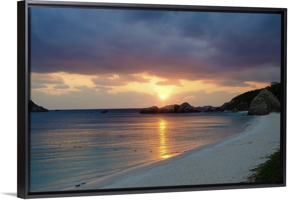 <p>Deserted white sandy beach on a tropical island at sunset, Aharen Beach, Tokashiki Island of Kerama Islands, Okinawa, Japan</p>