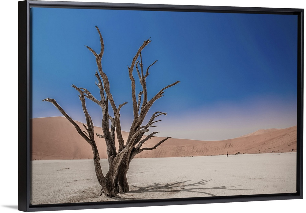 <p>Deadvlei in the Namib desert of Namibia is a dry landscape surrounded by high dunes, the cracked earth is broken by dead camel thorn trees that cannot decay because of the lack of water.</p>