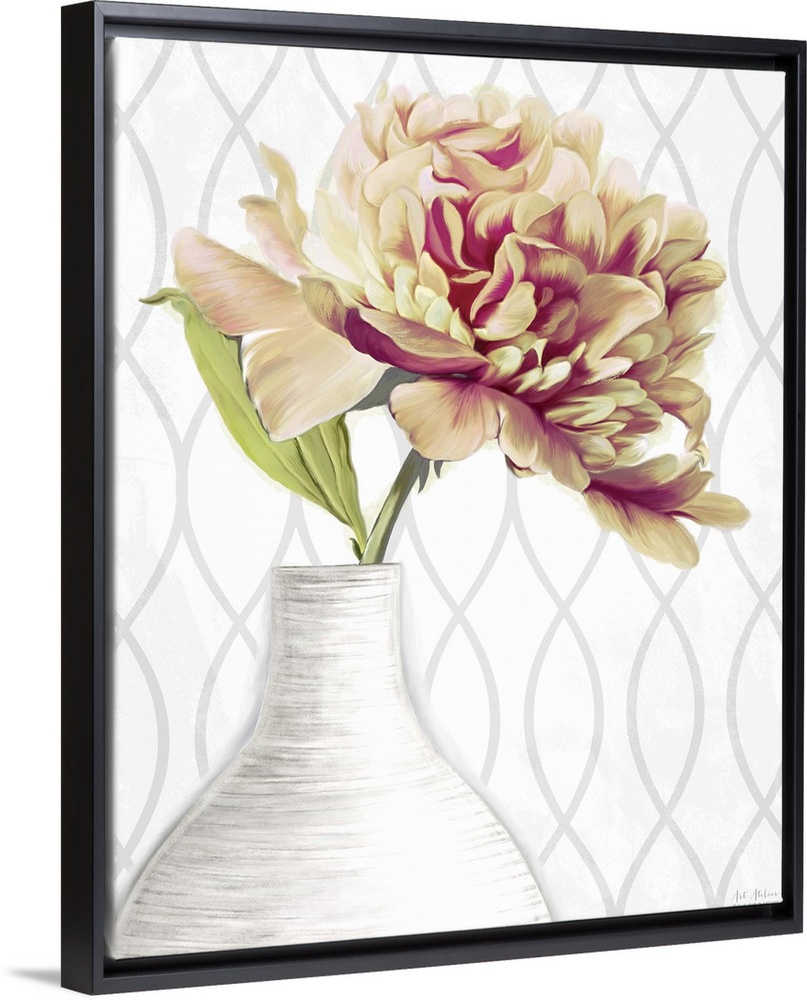 <p>Home decor artwork of yellow and pink peony's in a white vase.</p>