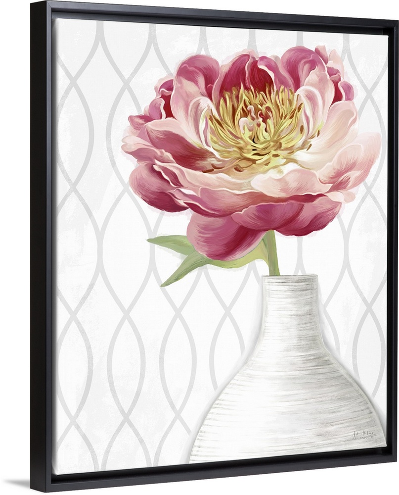<p>Home decor artwork of yellow and pink peony's in a white vase.</p>