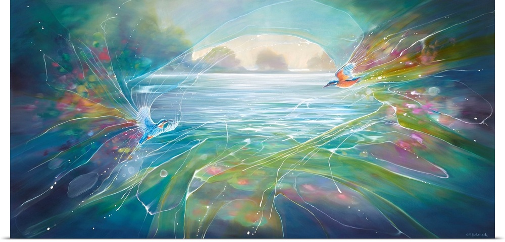 Art Blue Wall Art Gill Bustamante Contemporary Art Landscapes Lake Seascapes Painting Wildlife Bird