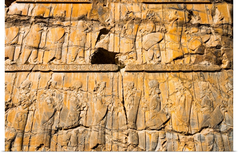 <p>Detail from relief of 100 soldiers on a door jamb of the Palace of 100 Columns, Persepolis,UNESCO World Heritage Site, Iran, Middle East</p>
