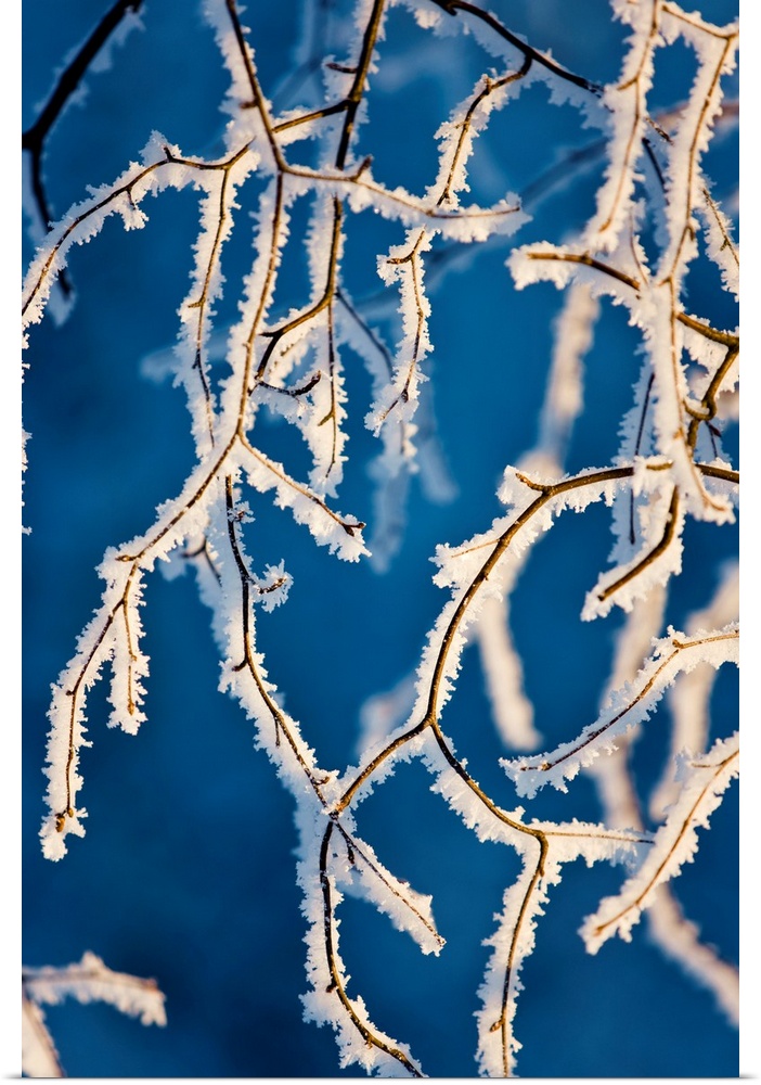 <p>Detail of birch trees covered with hoarfrost, winter, Russian Jack Park, Anchorage, Alaska.</p>
