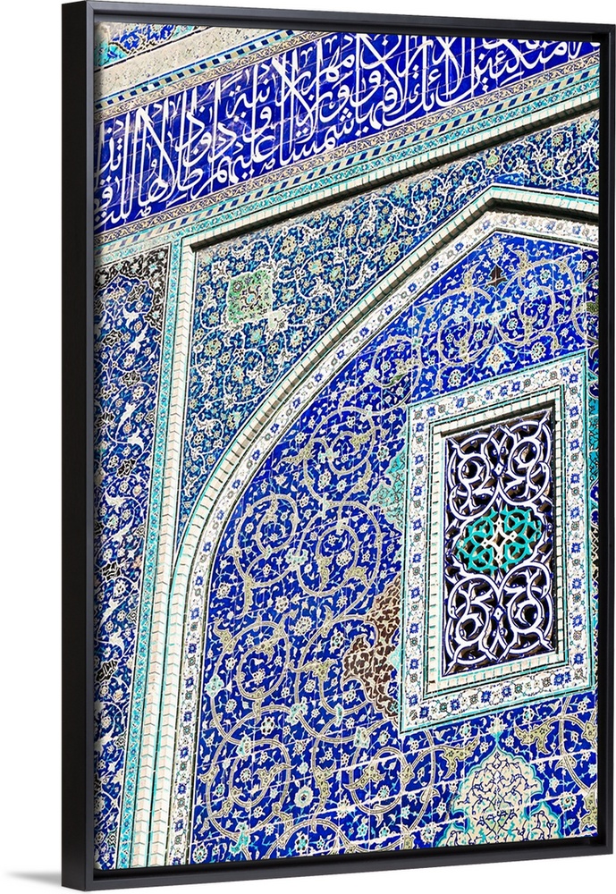 <p>Detail of ceramic tiles on wall in Isfahan blue, Imam Mosque, UNESCO World Heritage Site, Isfahan, Iran, Middle East</p>