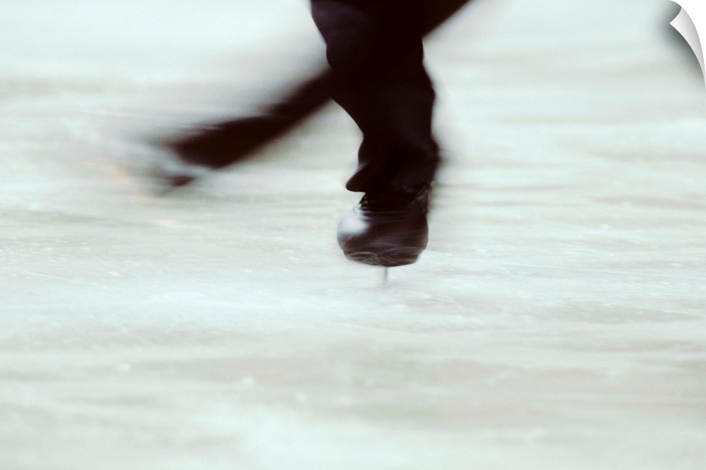 <p>Detail of male figure skater's legs and boots spinning.</p>