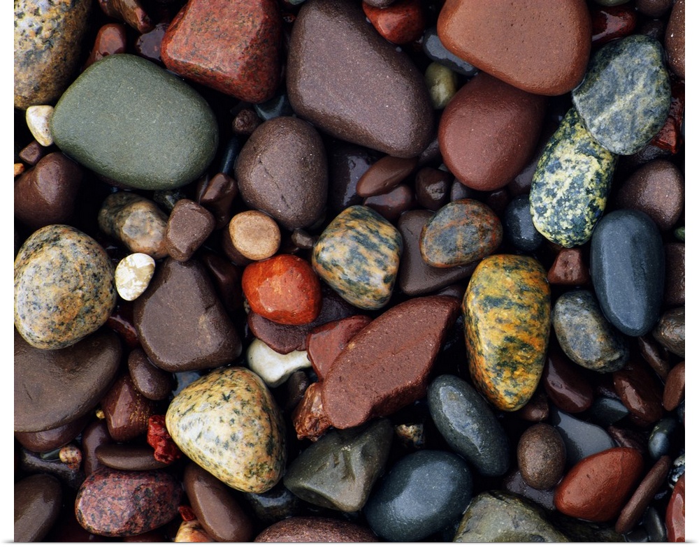 <p>Photograph of collage of rocks varying in color, size, and shape. Some of the rocks are smoothed, some are rough textured. Some are solid colored and some are patterned.</p>