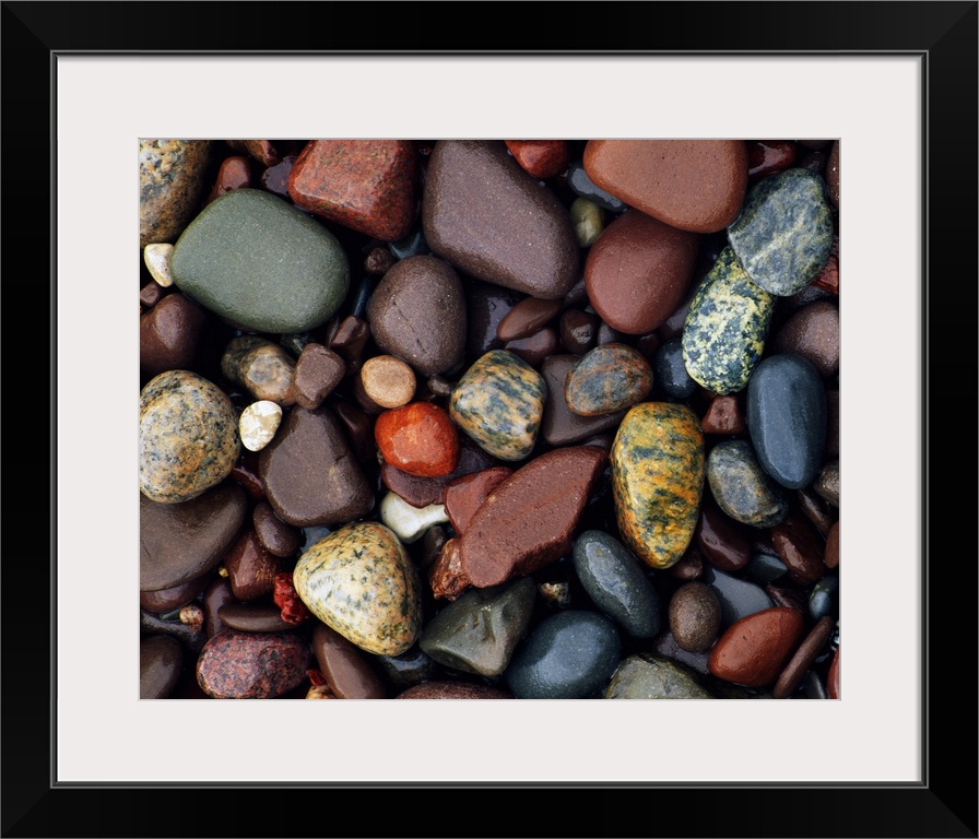 <p>Photograph of collage of rocks varying in color, size, and shape. Some of the rocks are smoothed, some are rough textured. Some are solid colored and some are patterned.</p>
