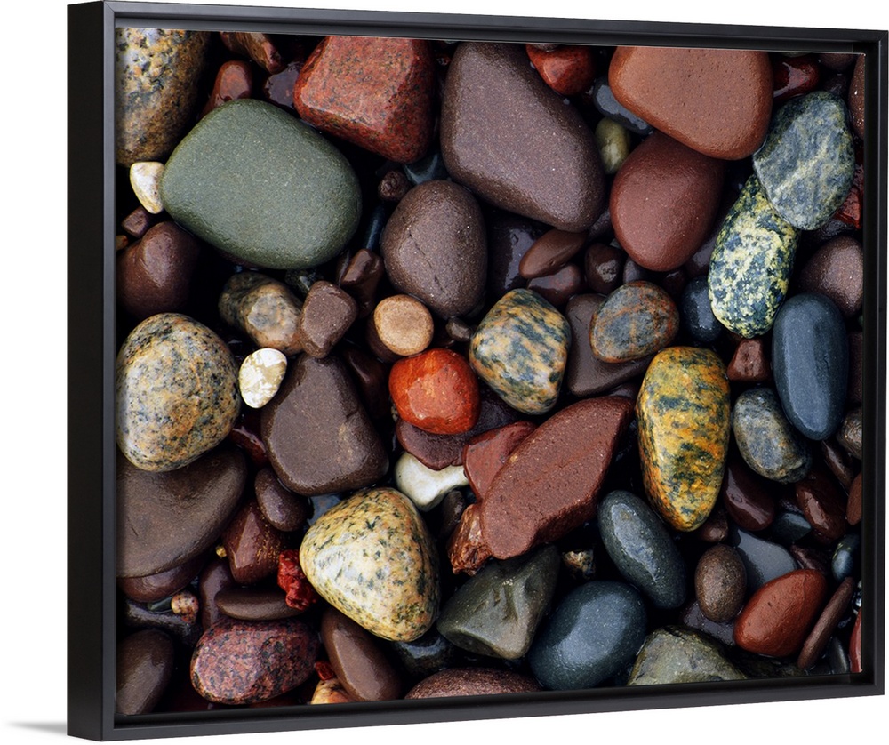 <p>Photograph of collage of rocks varying in color, size, and shape. Some of the rocks are smoothed, some are rough textured. Some are solid colored and some are patterned.</p>