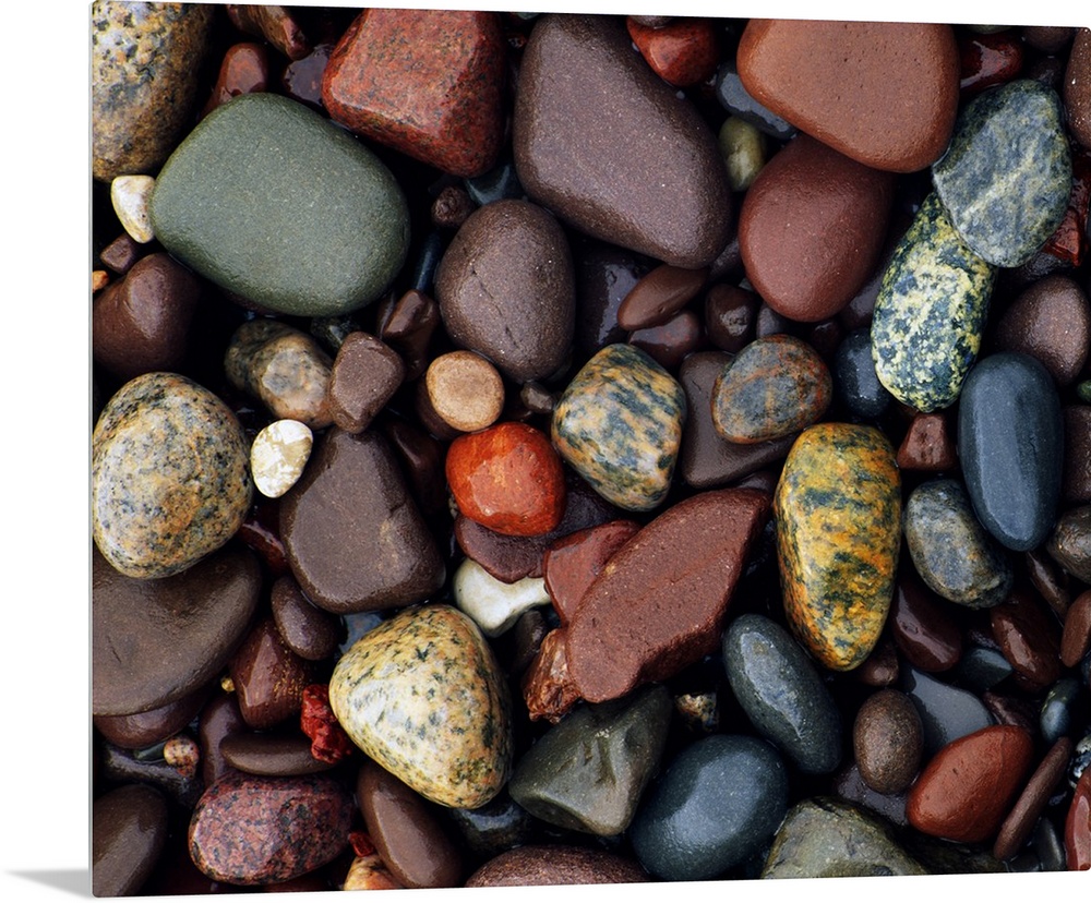 <p>Photograph of collage of rocks varying in color, size, and shape. Some of the rocks are smoothed, some are rough textured. Some are solid colored and some are patterned.</p>