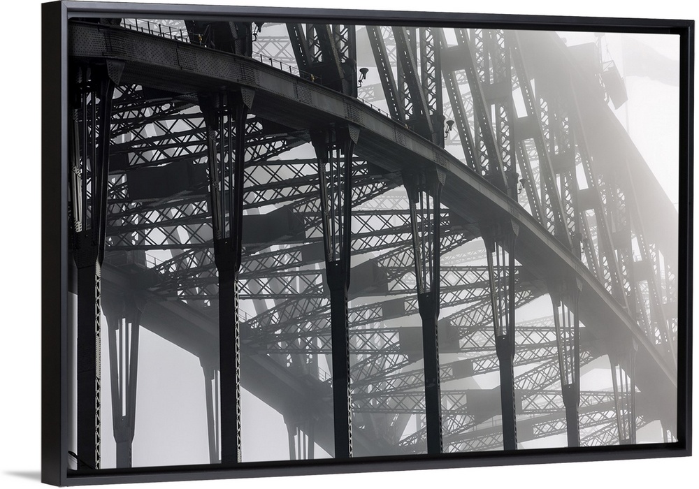 <p>Detail of Sydney Harbour Bridge in fog, Sydney, New South Wales, Australia.</p>